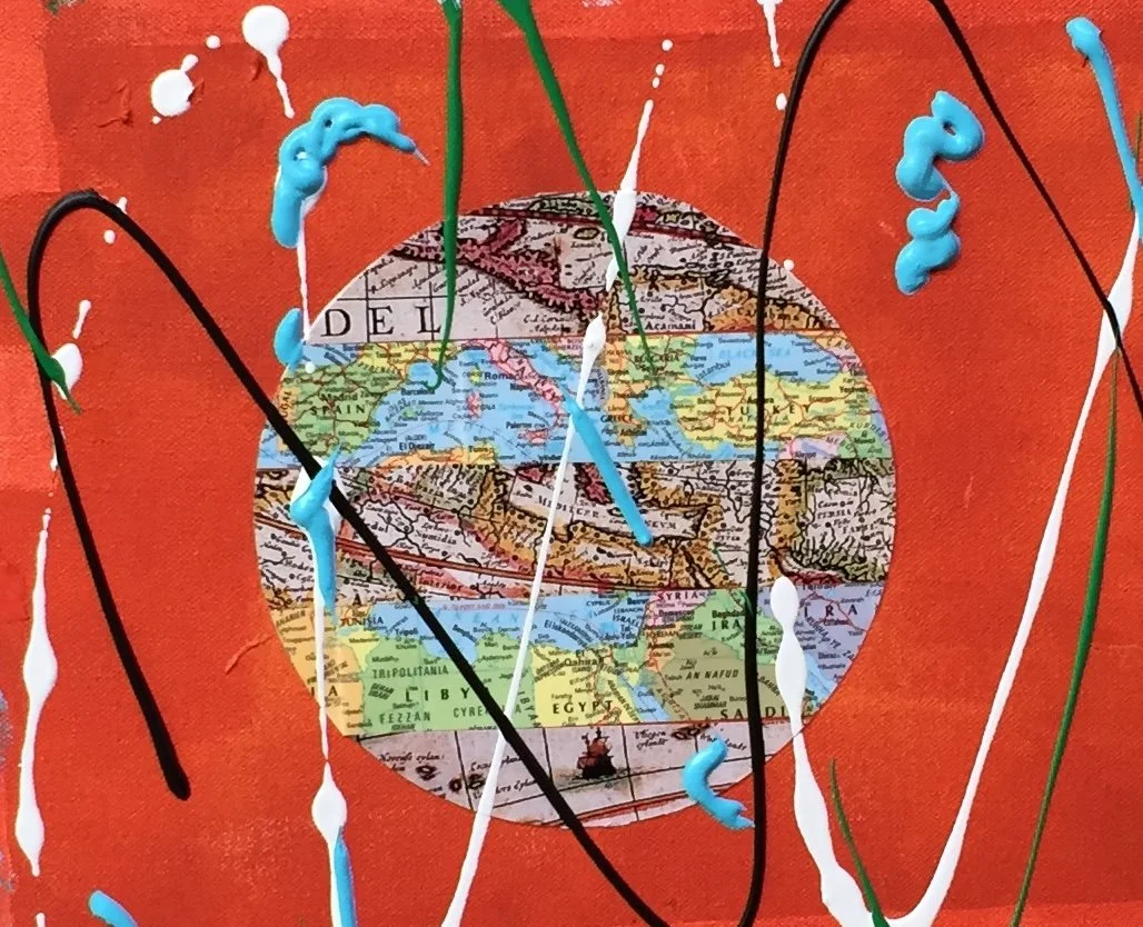 Acrylic and map sections on canvas